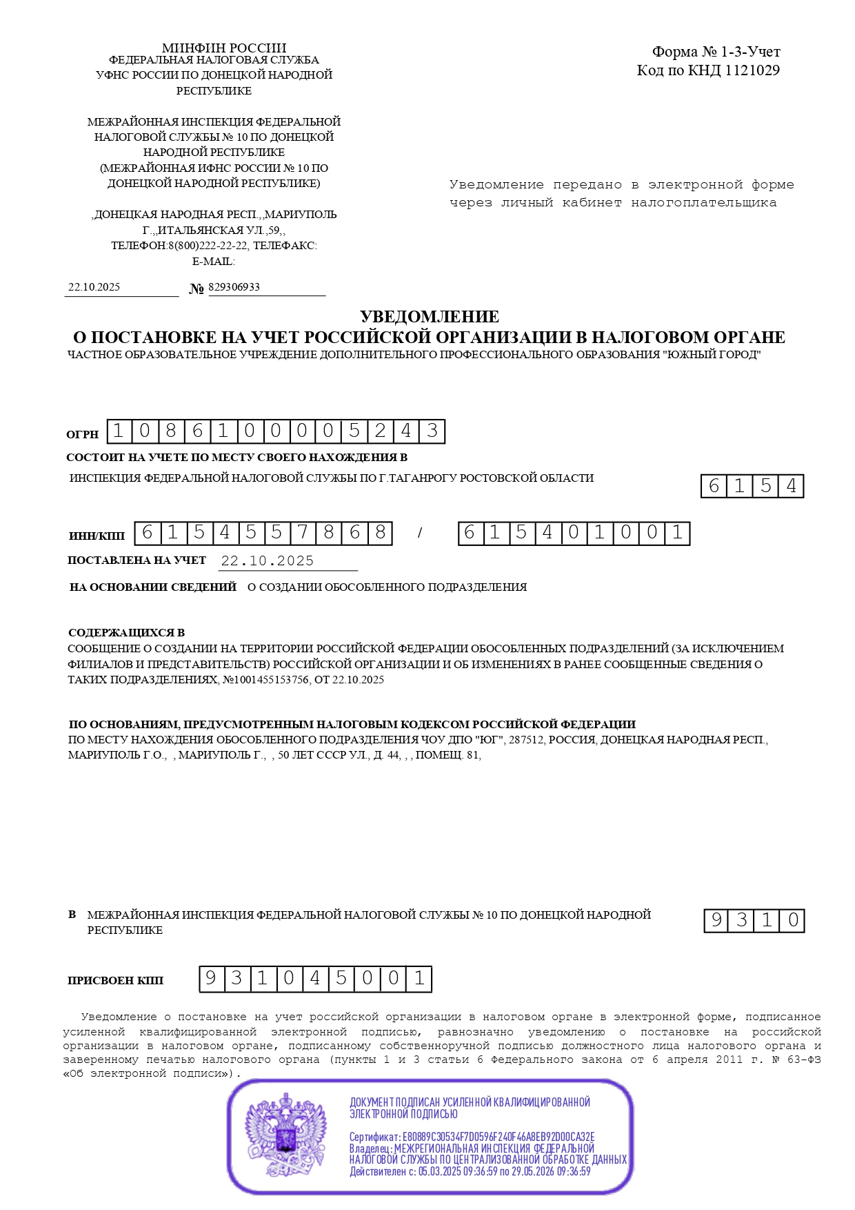 - г. Мариуполь, ул. 50 лет СССР д.44 пом. 81